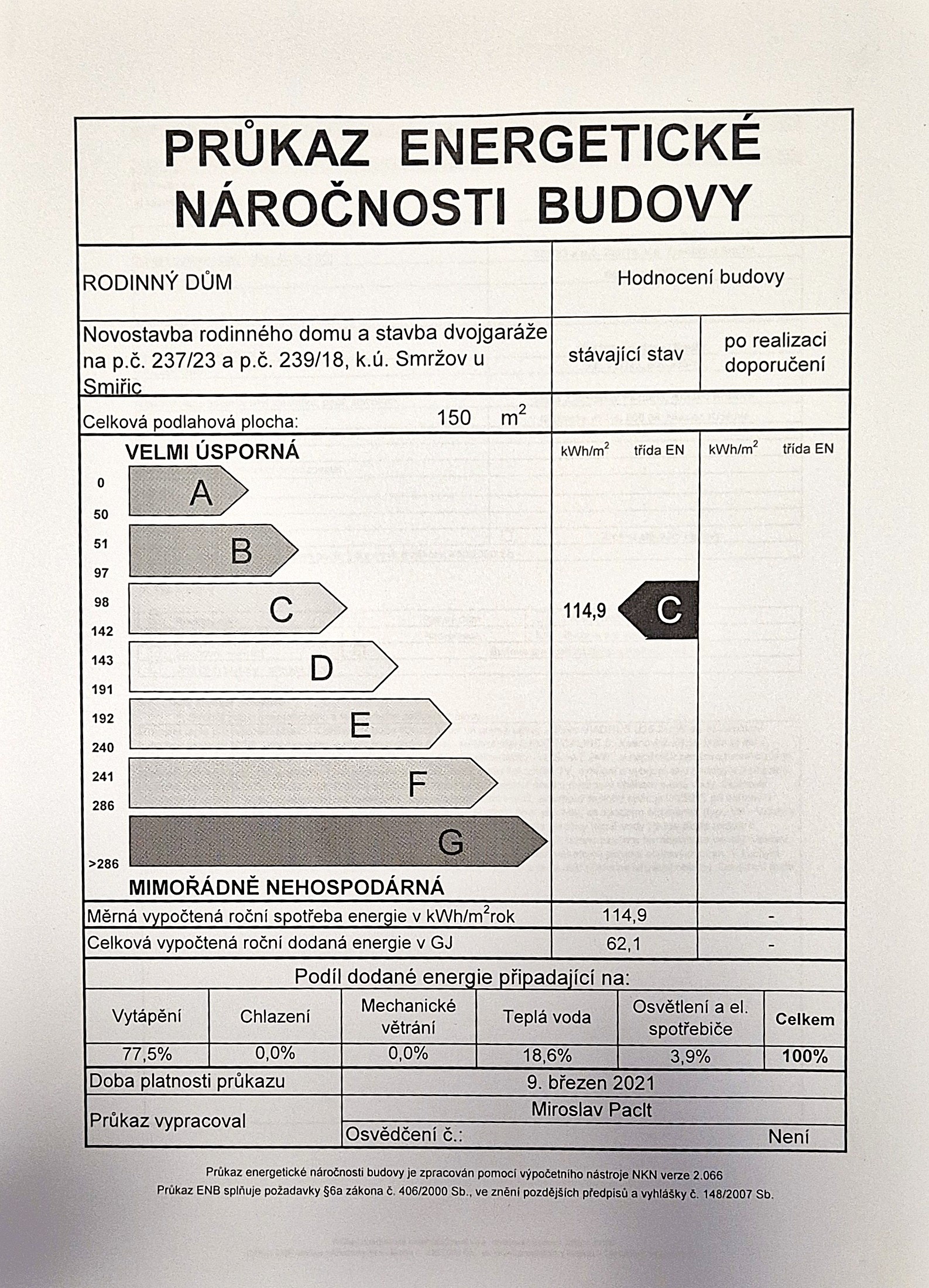 | Zastavěná plocha | 150 m² |